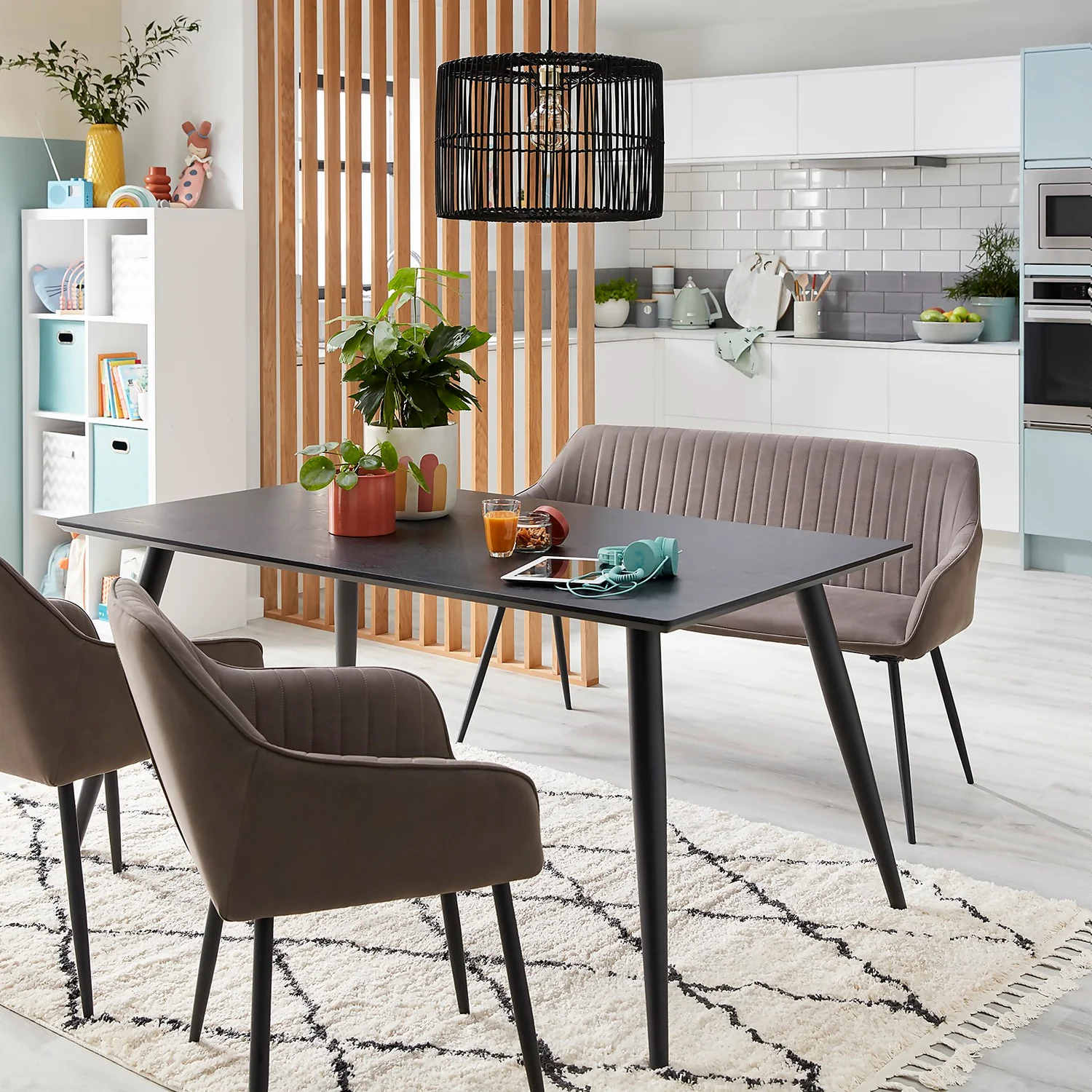 Classic design with a modern twist. With a supporting back and armrests, the Archer backed bench is perfect placed around your dining table for evening get-togethers and relaxed family meals.