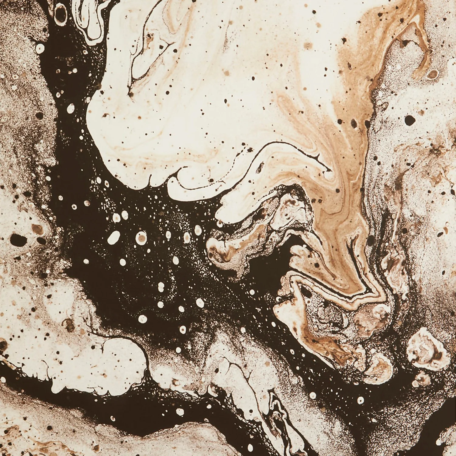 The Astratto stretches canvas within a minimal wooden frame which has a white finish. Blacks, whites and greys combine with slightly warmer ochre tones, however the overall aesthetic remains a muted and calming one. The composition is inspired by fluid mineral elements, reminding one of the beautiful inconsistency of semi-precious agate.