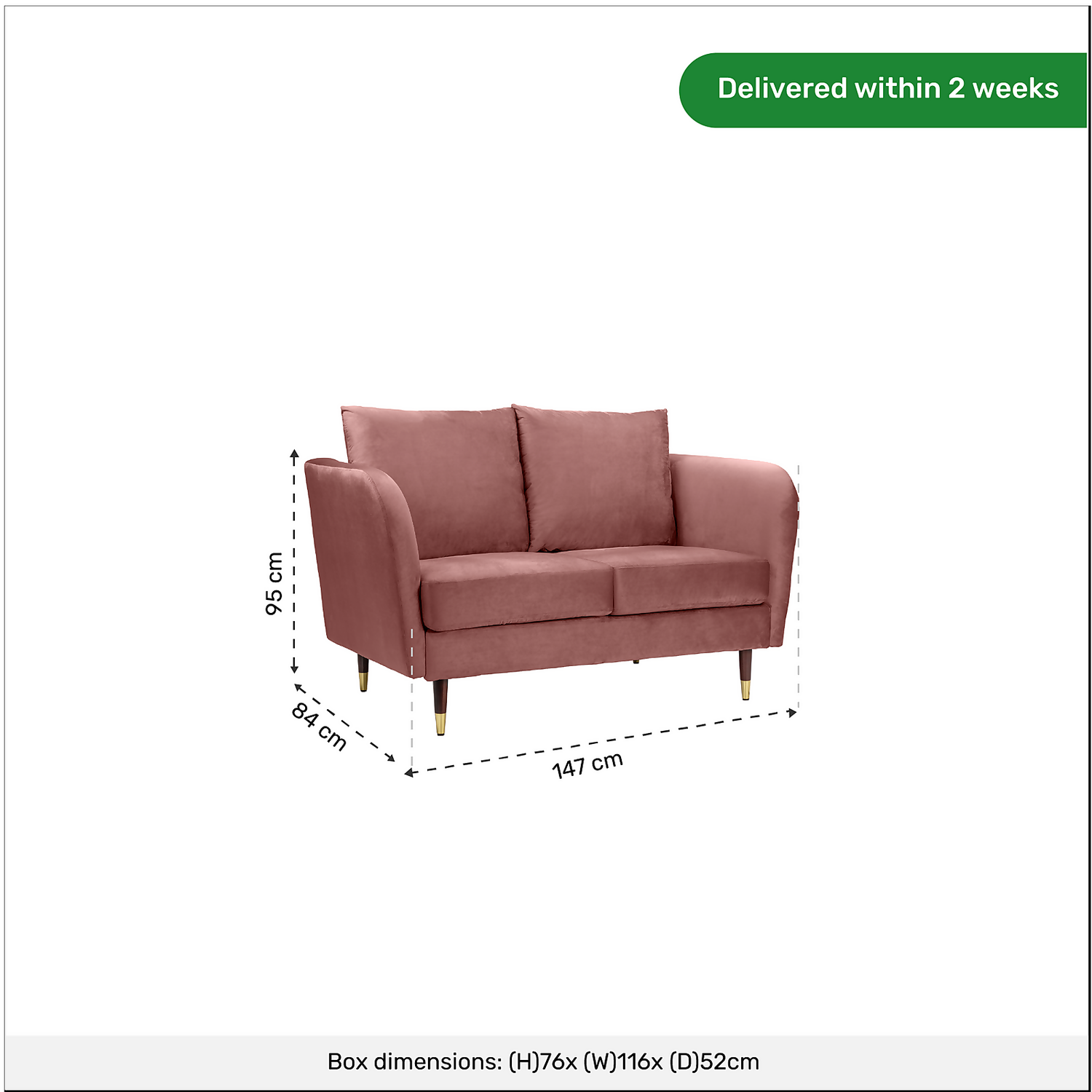 Cosmo Velvet 2 Seater Sofa In A Box – Rose Pink