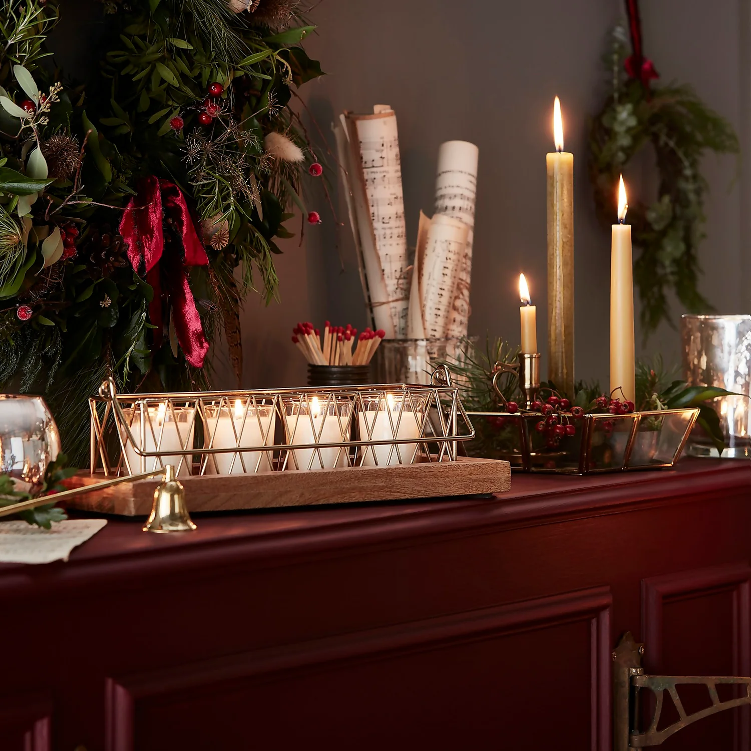 This elegant T-light holder with wooden base is a beautiful piece of décor for any home.