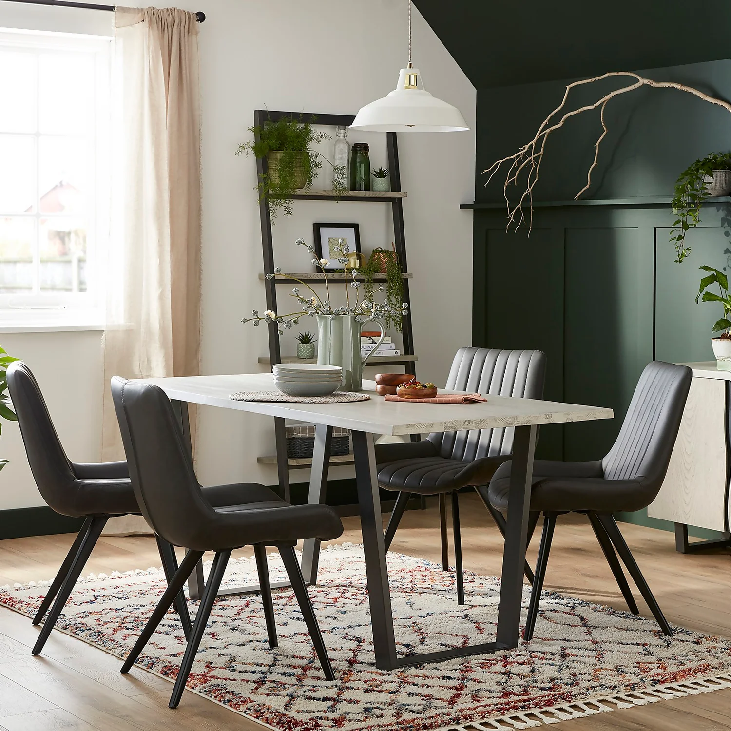 The Dalston Range has a distinct and bold style combining a natural aesthetics with an industrial form. The brushed oak, grey oil stain finish, brings out the grain of the material. Combined with the live edge detail which enhances the natural qualities of the timber. Strong and refined lines seek to cross the paths between the uniform and irregular patterns making for a stripped back, modern and on trend living and dining collection.