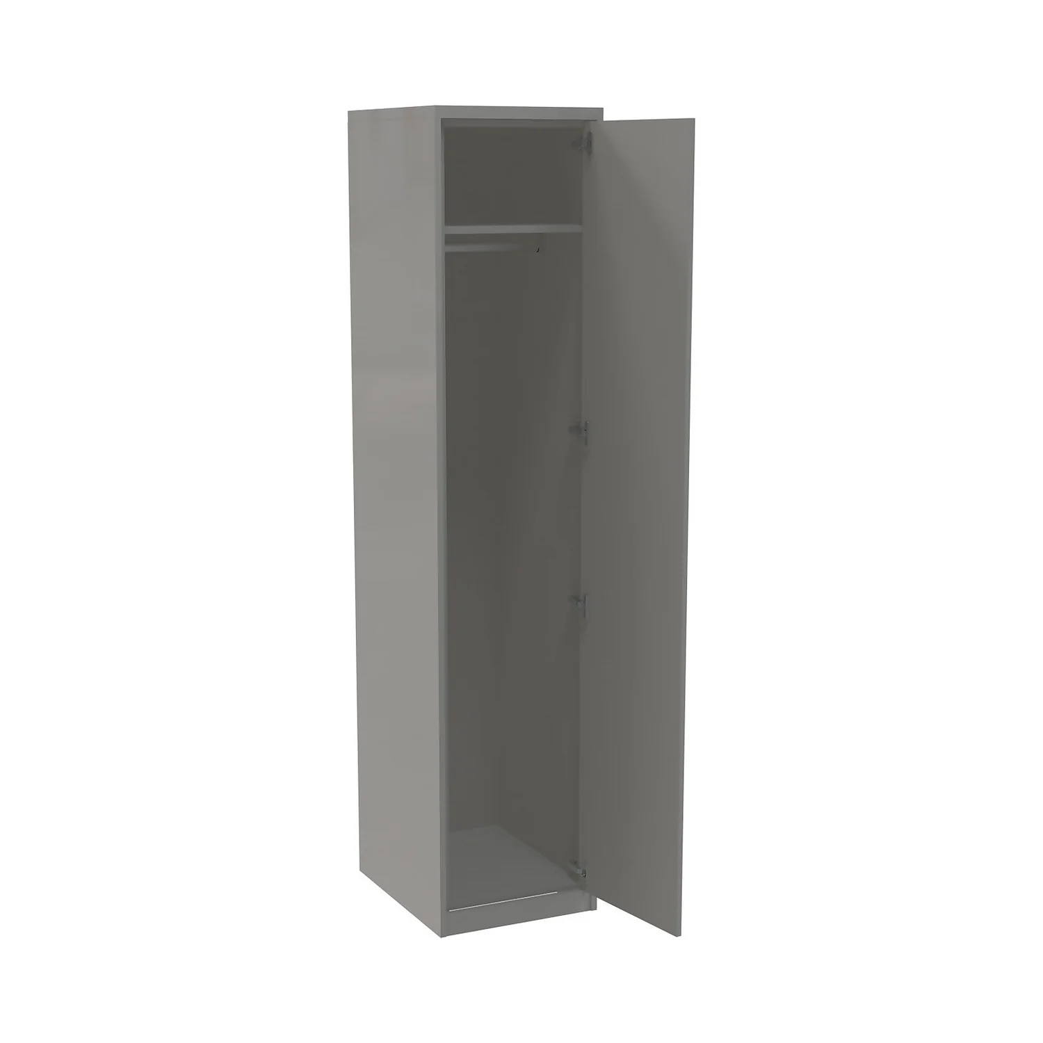 The House Beautiful range is exclusive to Homebase and offers a selection of different finishes and storage configurations to suit your needs. With a range of carcass colours and contrasting door designs, you can select the look to fit your bedroom aesthetic. The House Beautiful range now includes the fully fitted look with this combination pack which includes the wardrobe, end panels, plinth and cornice, meaning you can complete your bedroom with a luxury look. Coordinating chests of drawers are also available separately. This single wardrobe features a grey internal carcass which includes end panels, plinth and matching cornice all in a finish to match the beautiful luxe gloss grey slab door. The wardrobe features premium soft close Blum hinges, a shelf and a hanging rail. You can customise your wardrobe with our additional internal storage options (available separately) including internal drawers, shelves, dividing shelves and extra hanging rails. Choose your handles from our range of both traditional and modern to suit your desired look.