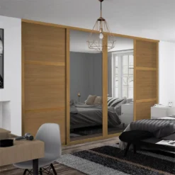 - The wardrobe is supplied with an internal shelf and hanging rail. The carcass features adjustable feet for levelling on uneven floors and is supplied with the instructions and components to secure to the wall (wall plugs not supplied). A unique feature of the clad-on panels is the pre-cut notch to allow clearance of most skirting boards, allowing an easy flush fit