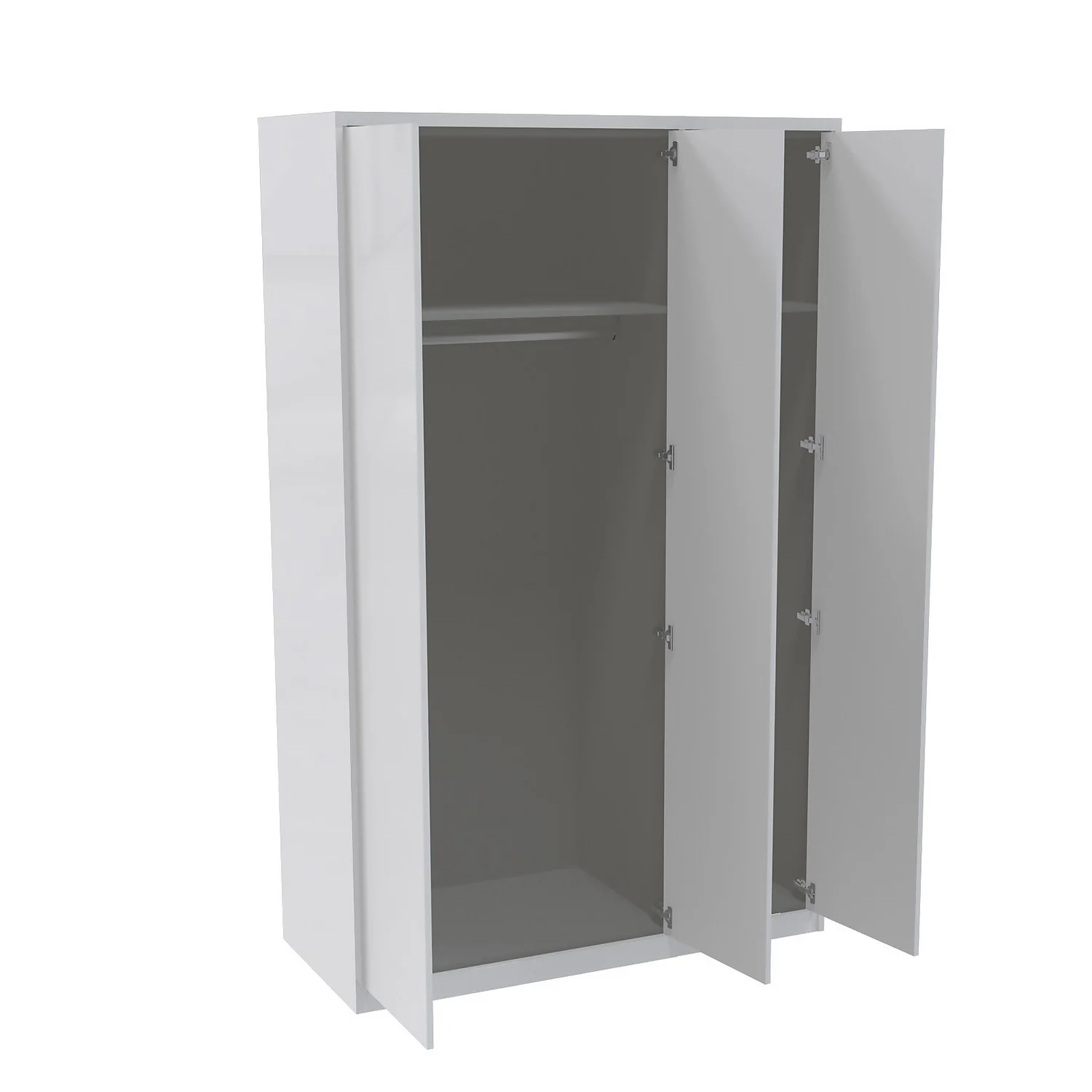 - A fitted look is achieved by using clad on panels, plinth and cornice which are all included with this wardrobe. All the elements that clad the internal grey carcass (clad on panels, plinth and cornice) are a perfect match to the gloss white slab door