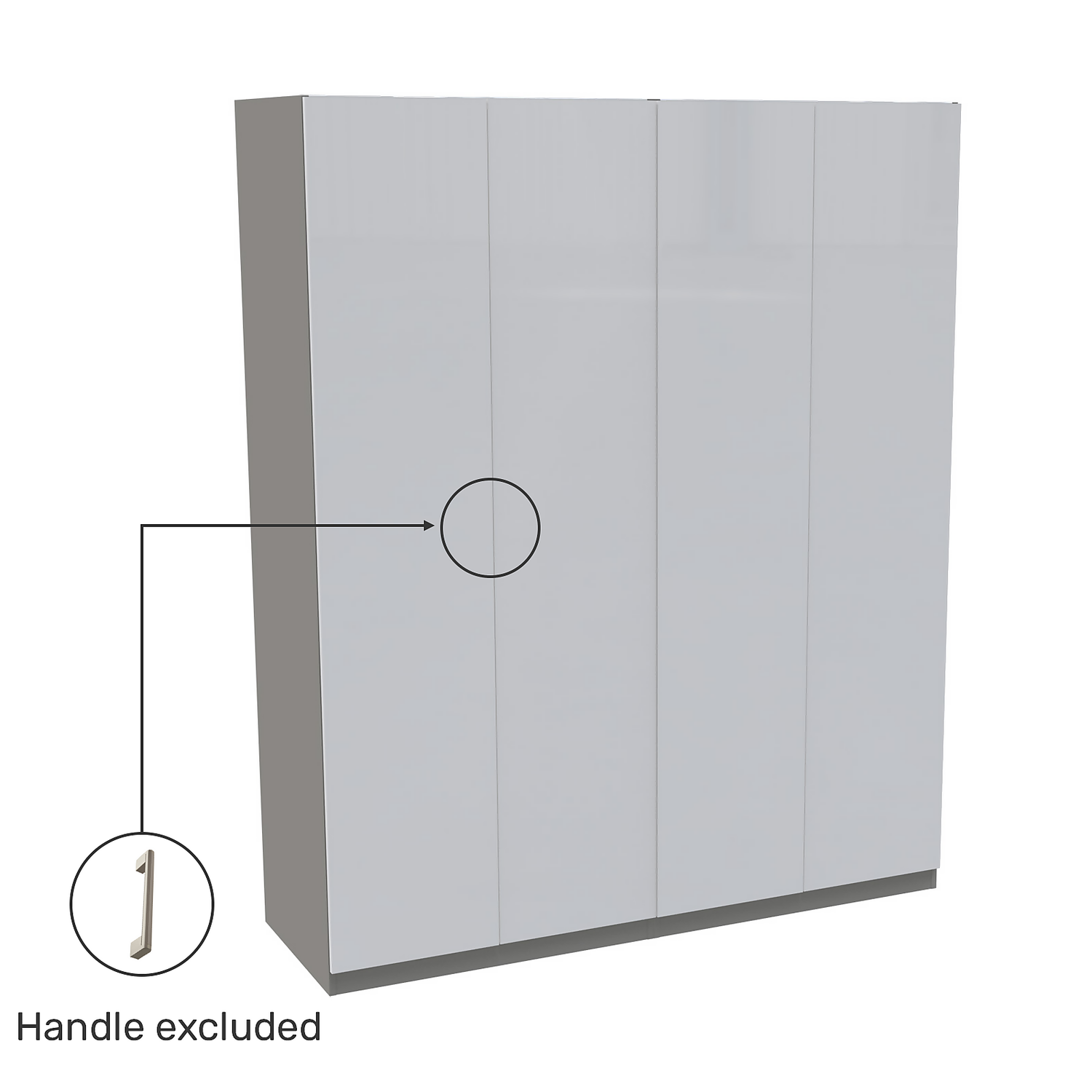 The House Beautiful range is exclusive to Homebase and offers a selection of different finishes and storage configurations to suit your needs. With a range of carcass colours and contrasting door designs, you can select the look to fit your bedroom aesthetic. This four door wardrobe (2 x double units) features a grey carcass and beautiful gloss white slab doors for a modern sleek look. The wardrobe features premium soft close clip-on Blum hinges, two shelves and two hanging rails. You can customise your wardrobe with our additional internal storage options (available separately) including internal drawers, shelves, dividing shelves and extra hanging rails. Choose your handles from our range of both traditional and modern to suit your desired look.