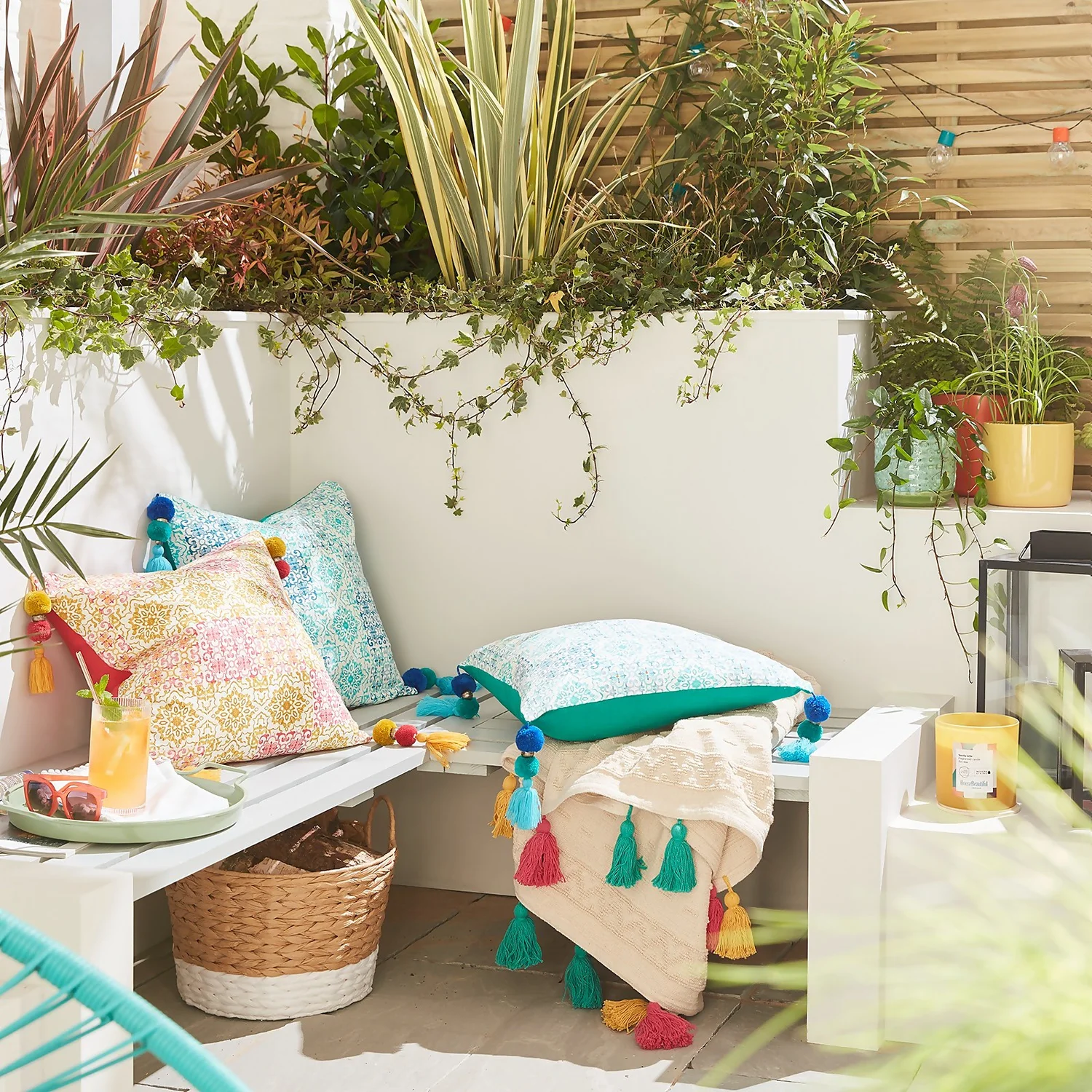 Add a tropical touch your living space or bedroom with the distinctive tile print and vibrant colours of the House Beautiful Paca cushion. No details have been spared from the intricate printed design, solid bold Ibiza pink reverse and hand-worked tassels. This eyecatching filled scatter cushion will bring some summer holiday vibes to brighten up your home.