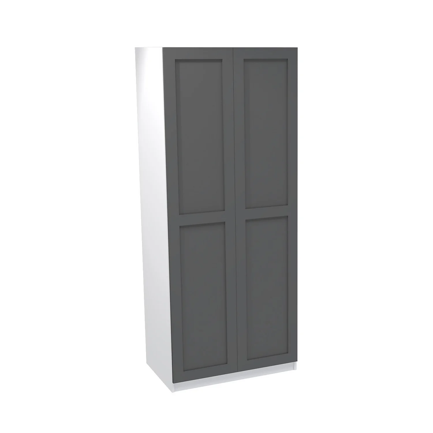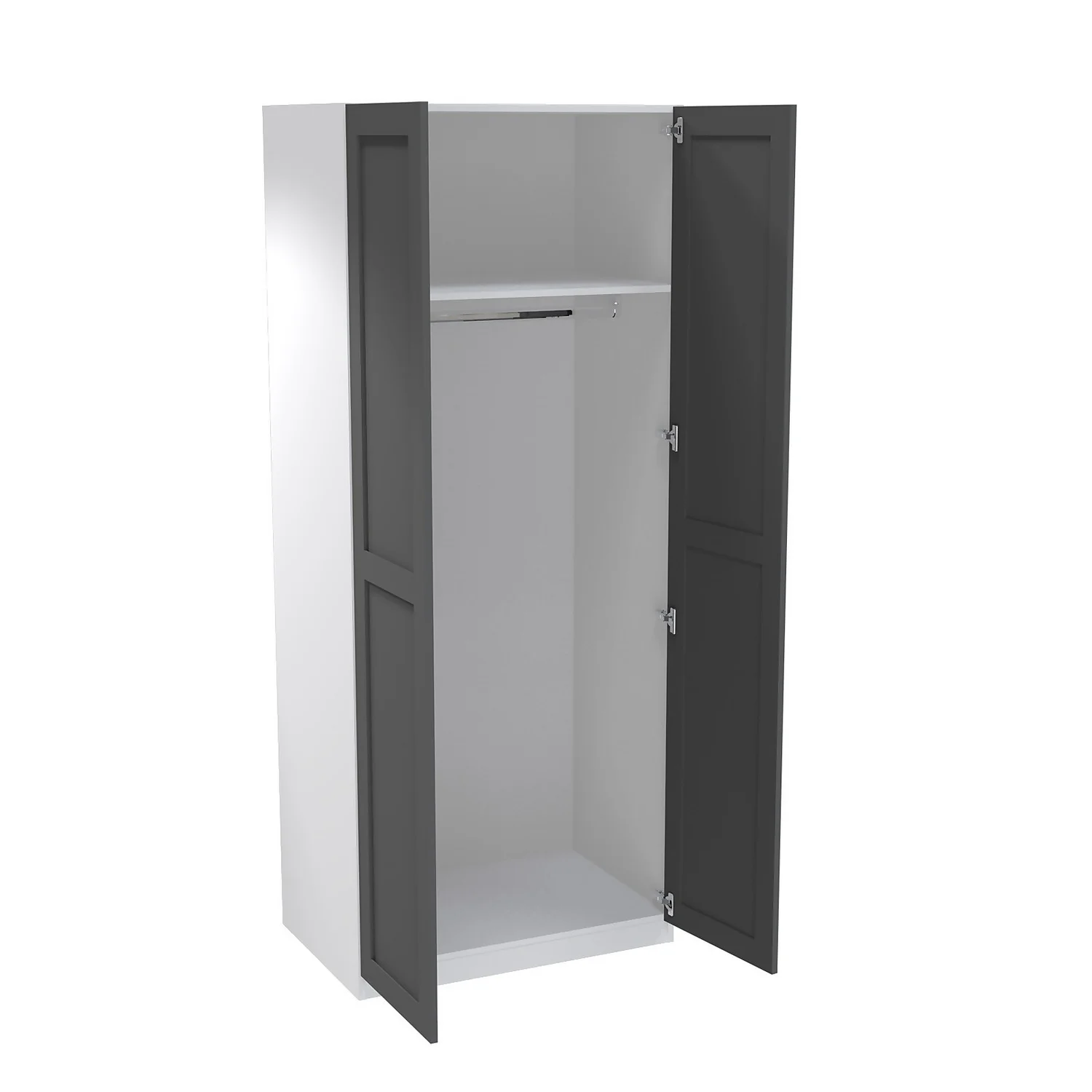 The House Beautiful range is exclusive to Homebase and offers a selection of different finishes and storage configurations to suit your needs. With a range of carcass colours and contrasting door designs, you can select the look to fit your bedroom aesthetic. This double wardrobe features a white carcass and beautiful shaker doors finished in a luxurious matt carbon grey. The wardrobe features premium soft close Blum hinges, a shelf and a hanging rail. You can customise your wardrobe with our additional internal storage options (available separately) including internal drawers, shelves, dividing shelves and extra hanging rails. Choose your handles from our range of both traditional and modern to suit your desired look.