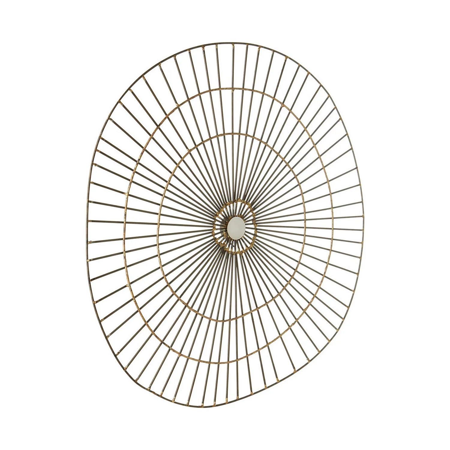 Sleek iron wires emerge out of a circular centre to form the sunburst design frame of this small piece of wall art. Bright gold finish detailing effortlessly blends with the more muted hues of the wire frame and its irregular, curvy rim. Use this abstract piece of art to make a statement in a contemporary setting.