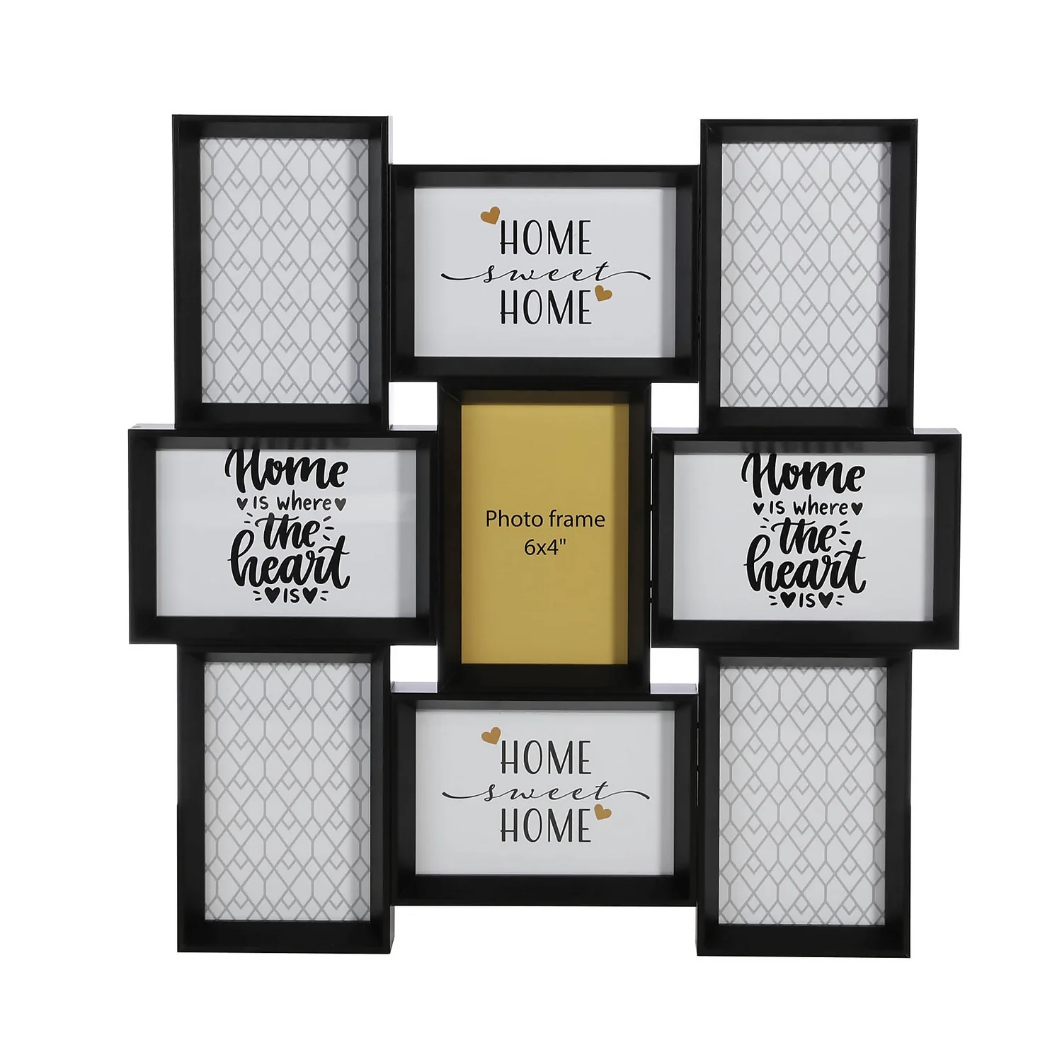 A lovely decorative piece or even a personalised gift for a loved one, this black multi frame holds 9 photos