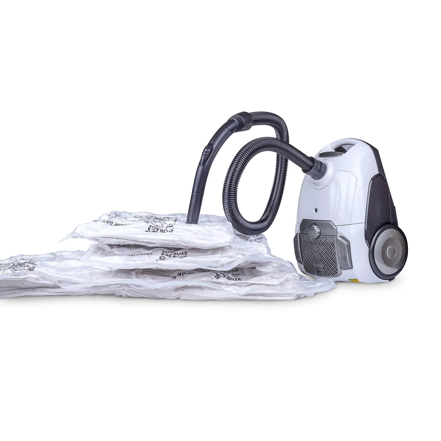 Each bag has a zip slider to create an airtight seal and the clear bag makes content identification easy. Easy to use; with any vacuum cleaner you can compress, store and organise your duvets, blankets, pillows, cushions, clothing and other bulky items.