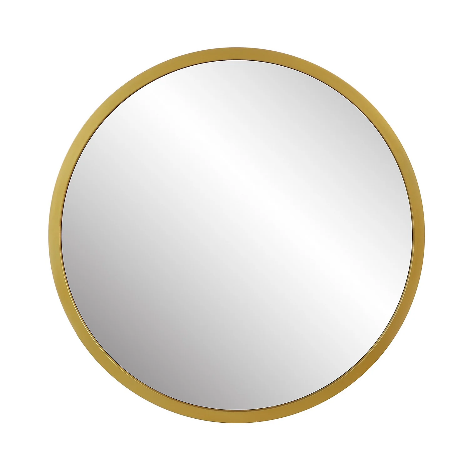 A decorative round mirror complete with a gold effect finish, perfect to add a statement to any wall in your home.